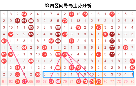 第四区间思路:四区那么看好的区域居然成了当期最冷的区间,仅仅相隔两期之后出现了一样的断区,能否从形态上再现本期经典走势值得商权。所以结合四区前期形态,目前只有一个战法,就是断区回补。这里的思路就完全符合了三区后半部分的走法,又将是一次艰难的选择。