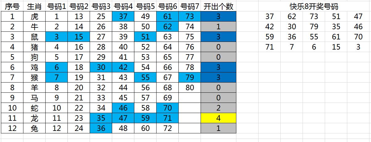 其中生肖龙(11,23,35,47,59,71)开了4个号码,6中4。在如此少的号码范围(6个)就开了这么多(4个)号码,还是很爽的,怎么选都很容易选对。