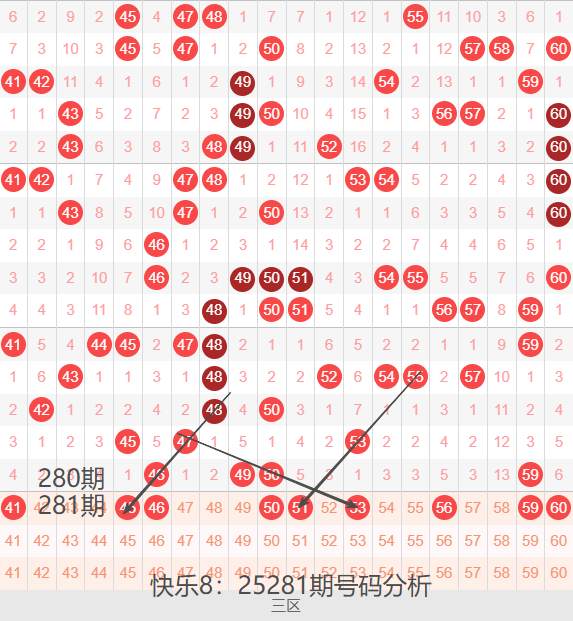 三区间41-60号码球走势,如下图: