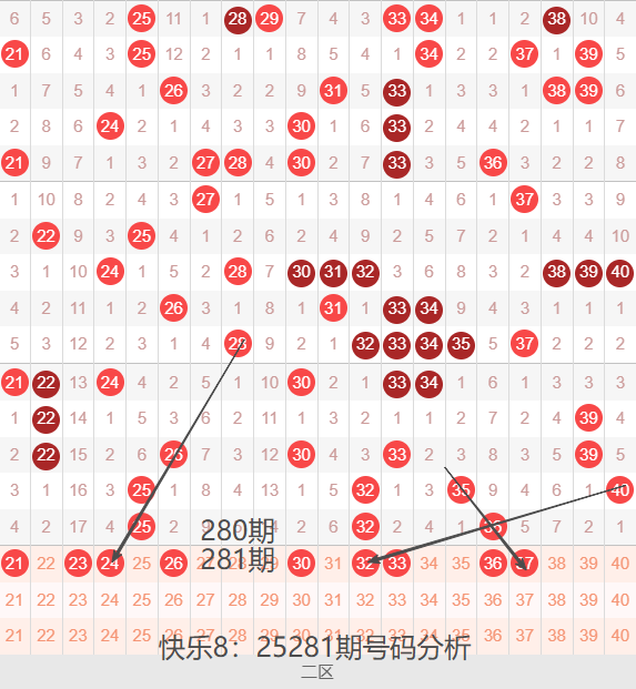 二区间21-40号码球走势,如下图: