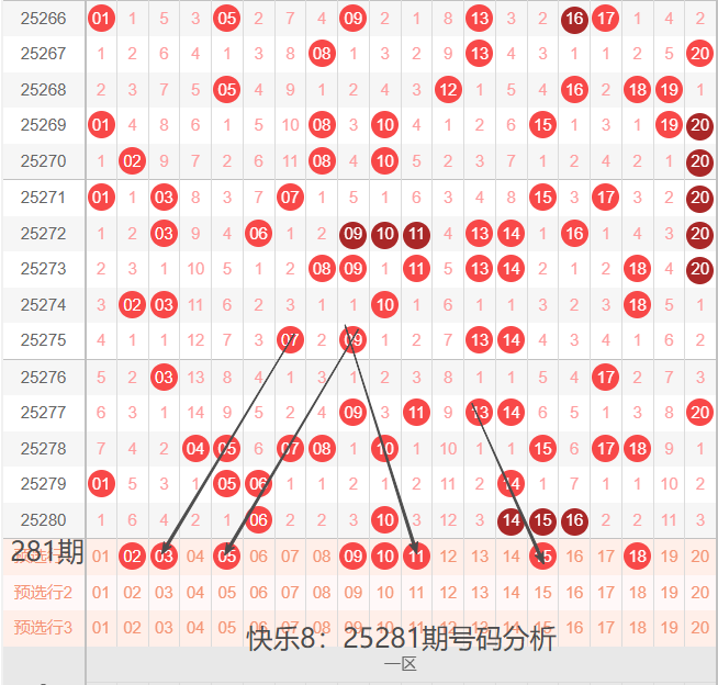 25281期,我们先看下一区间:01-20号码球,如下图: