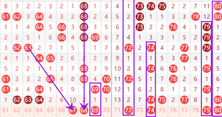 ⭐四区重点号码:67 68 69 74 80 ;防守号码:72 79