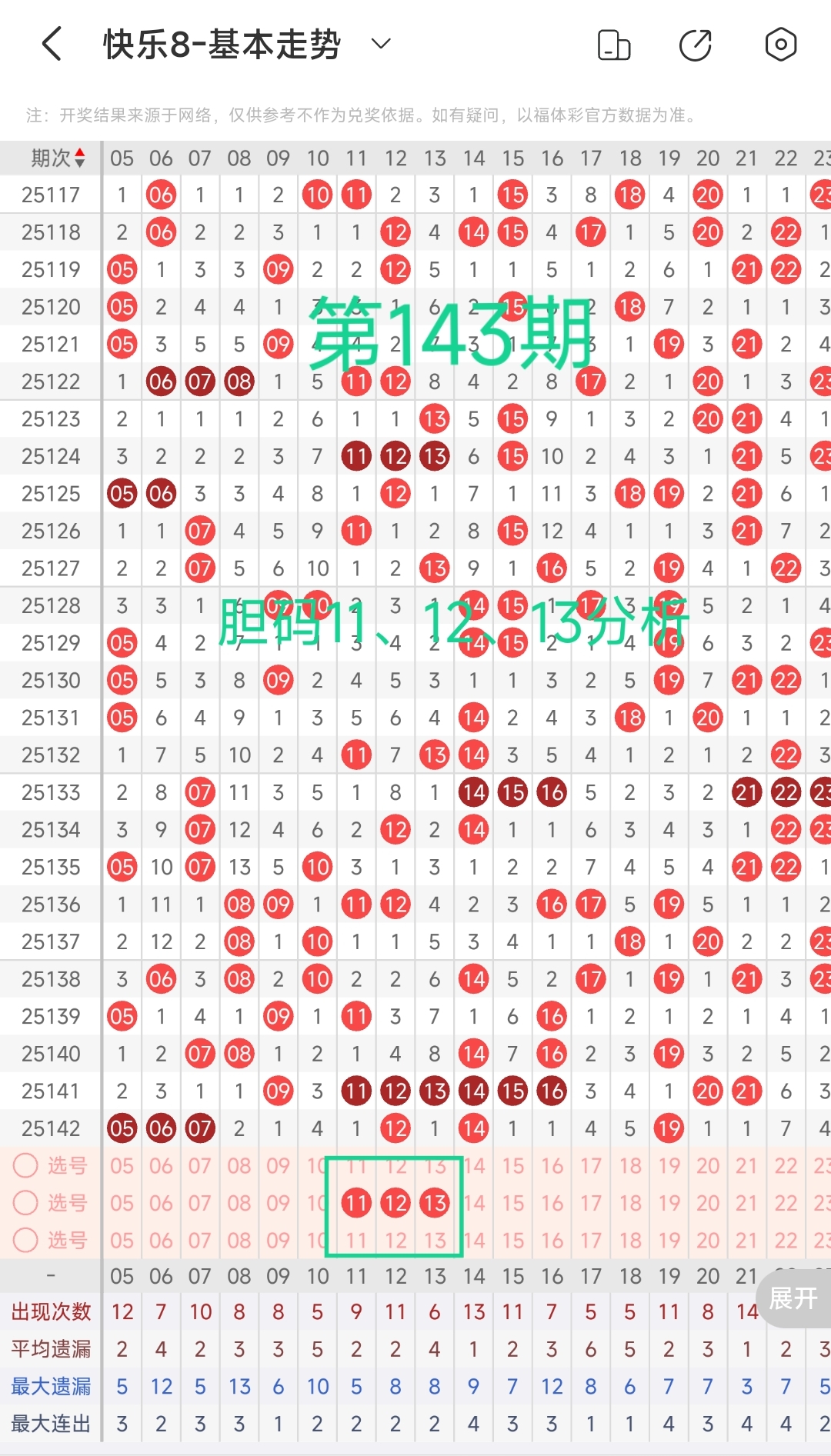 福彩乐8第143期选号推荐来啦!彩票选号虽充满随机性,但通过对过往数据和趋势的分析,或许能为大家提供一些参考思路,助力选号。