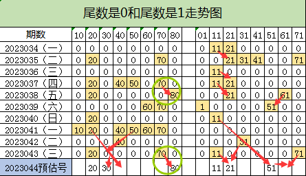 尾数0上期开出两个号码20,70,本期周四,可以先来看看同周期037期