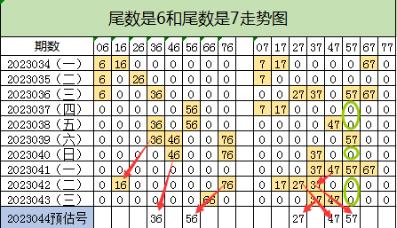 尾数7上期开出两个号码37,47,而在近期开奖号码走势上可以看到,在041期