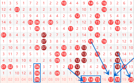 该区间的上期开出了06号数字的重号,本期我们要注意06号数字走三重的情况。由于该期间不断的出现3重号,所以本期我们要注意该区间出现3连号的情况,本期我们注意一下13 14 15出3连号的情况。17号数字是属于4斜连号码,我们可以关注一下。