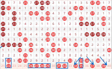 下图为21-40号数字区间走势分析图: