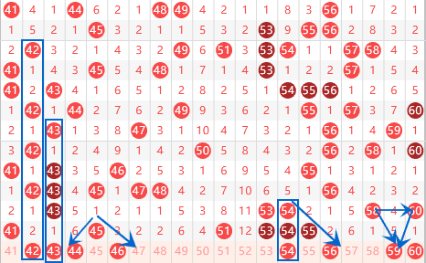 下图为41-60号数字区间走势分析图: