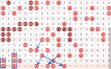 下图为61-80号数字区间走势分析图: