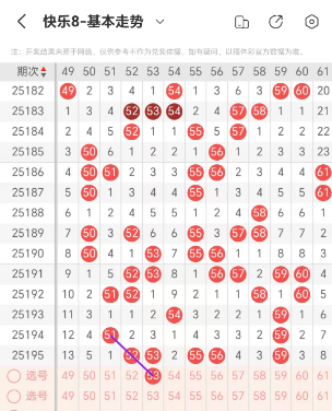 53码,如上图所示,与往期奖号51 52码形成一个斜3连,所以看好。