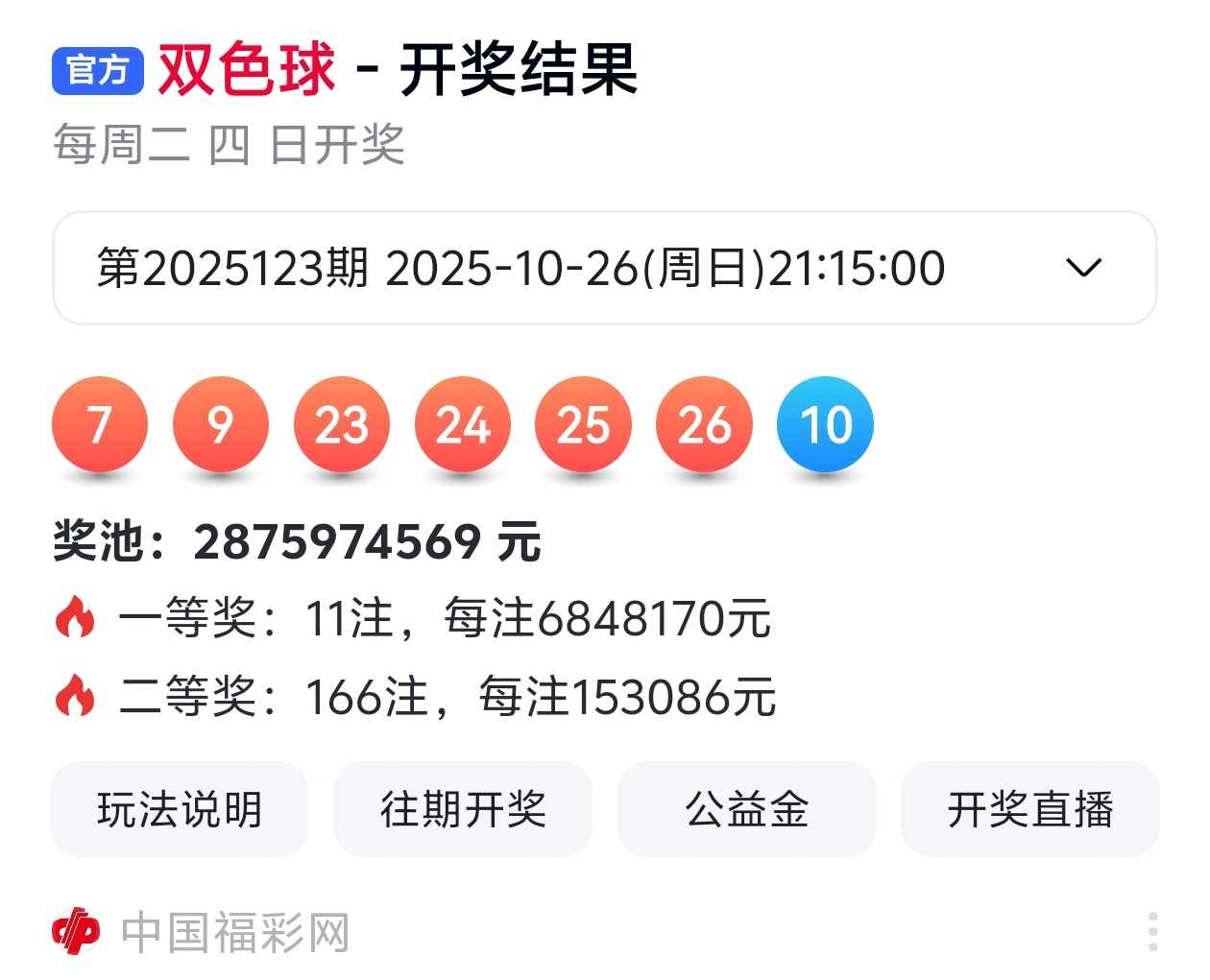 下面是我对2025124期福彩双色球的分析和预判,希望通过我的分析能让大家今晚大红!福彩双色球上期开奖号码如下图: