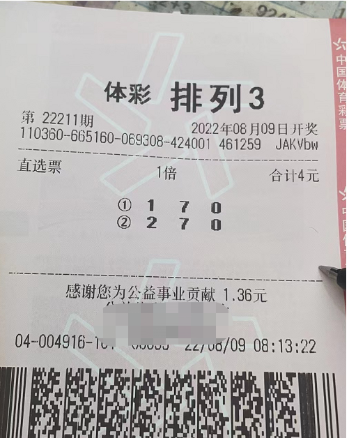 票样中有2注号码,它们分别是170和270,我们都知道近期排三号码偏的出奇,近期开奖号码分别是632、356、630,这3期号码都是重复号下两个,并且还都是36组合,所以210期再次开出630导致了号码返奖率很低,因为近期0路号码和中数字号码实在是太火爆了。