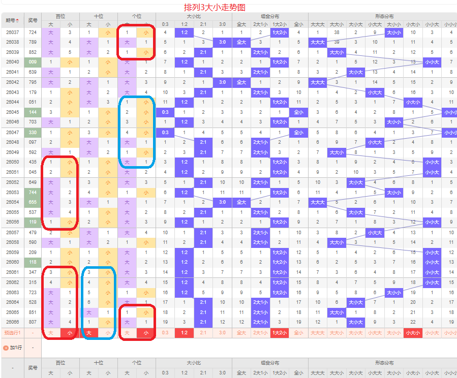 上一期012路个数比为1:1:1,是全路的号码组合,上期没有断路的号码,本期的号码以两路的组六组合号码为主,本期0路的号码可能会出现,本期应该会有1路的号码,本期以01的组六组合号码为主,防01路和12路的组合,侧重01路的号码组合防全路。