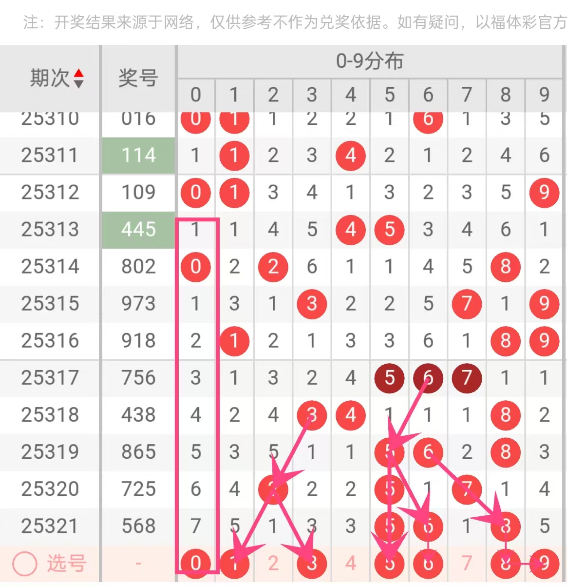 文章号码顺序不代表胆码推荐程度