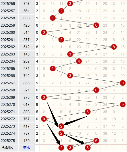 上期和尾为6,近5期和尾开出情况:第25271期开出5,属于奇数,2路号码,土属性;第25272期开出0,属于偶数,0路号码,土属性;第25273期开出2,属于偶数,2路号码,火属性;第25274期开出2,属于偶数,2路号码,火属性;第25275期开出6,属于偶数,0路号码,水属性;