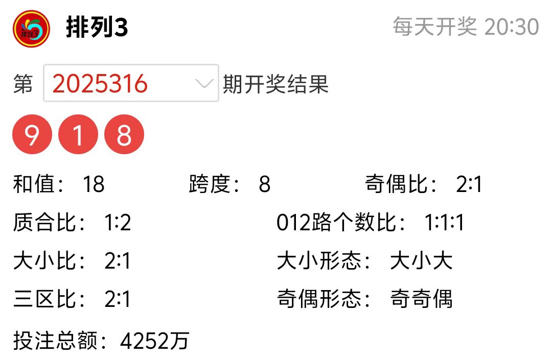 排列3上期(2025316期)开奖号码详情