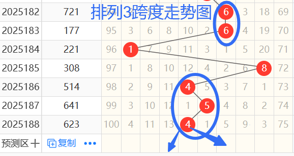 依次是18454跨度,按照路数转换关系来看,那么跨度我们暂定258 0369跨,个人看好3 6 跨度。