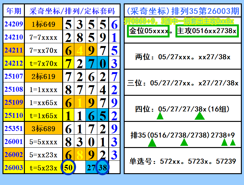(采奇坐标)视频经典回顾,排列35第26003期,3连中一招套出主攻0xx8x