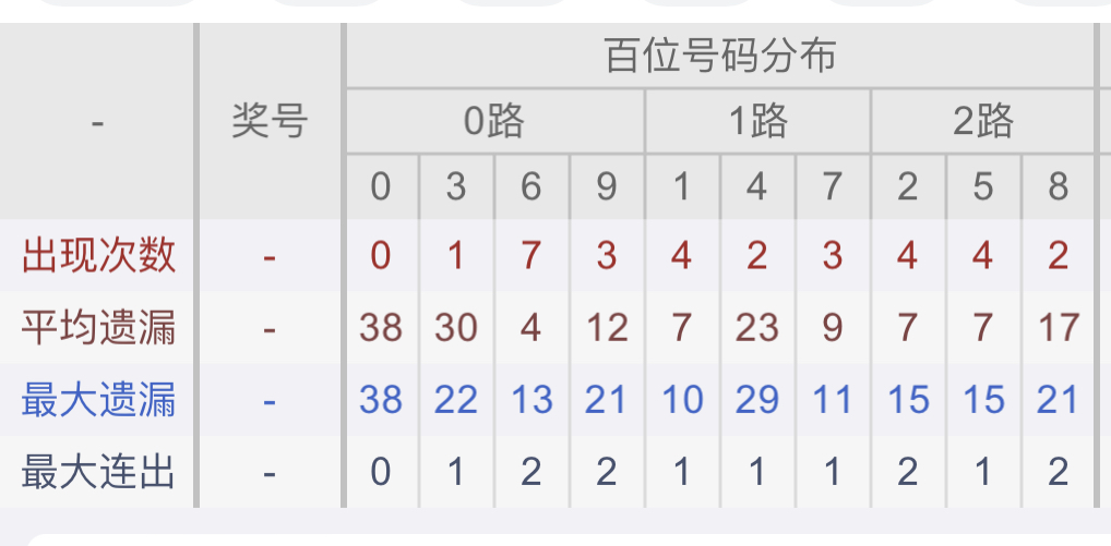 从近30期数据我们可以看出百位6是热码,这个冷热码数据我们结合之后的分析再利用它