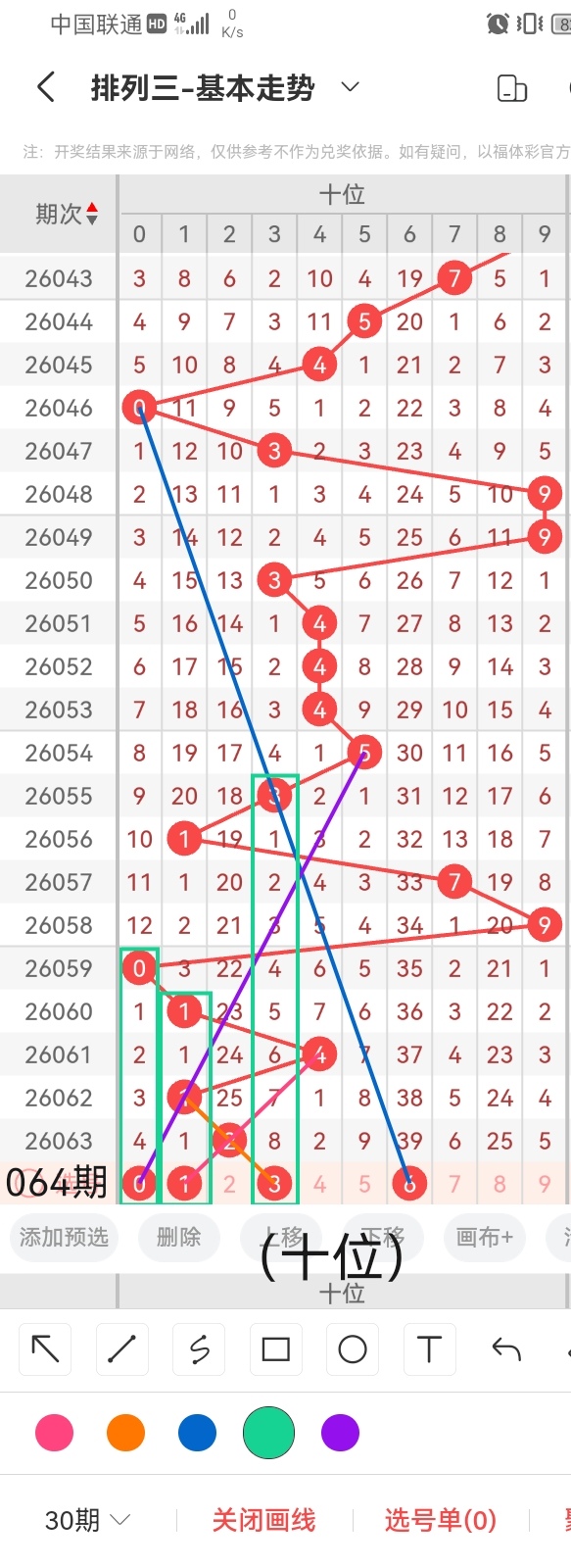 通过以上对上期的简单回顾,下面进入体彩排列三第2026064期(下面简称本期)的选号分析:
