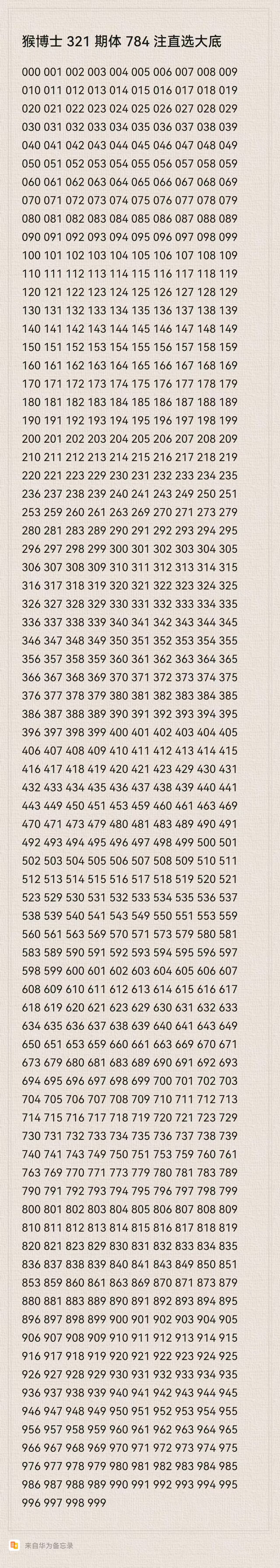 猴博士321期排列三784注直选大底:(可以当母底用,然后进行缩水)