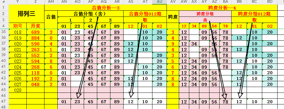 在组号逻辑中,合值与跨度是两个不可回避的参数,根据属性特点,规则设定了相应的表中数字分组,一是便于复盘,二是便于研判取舍;
