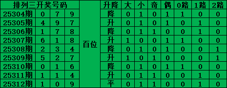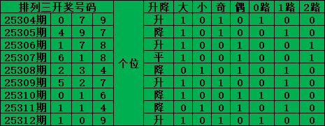 升降分析,上期是平参考上上期数据升,本期选择降:0号。