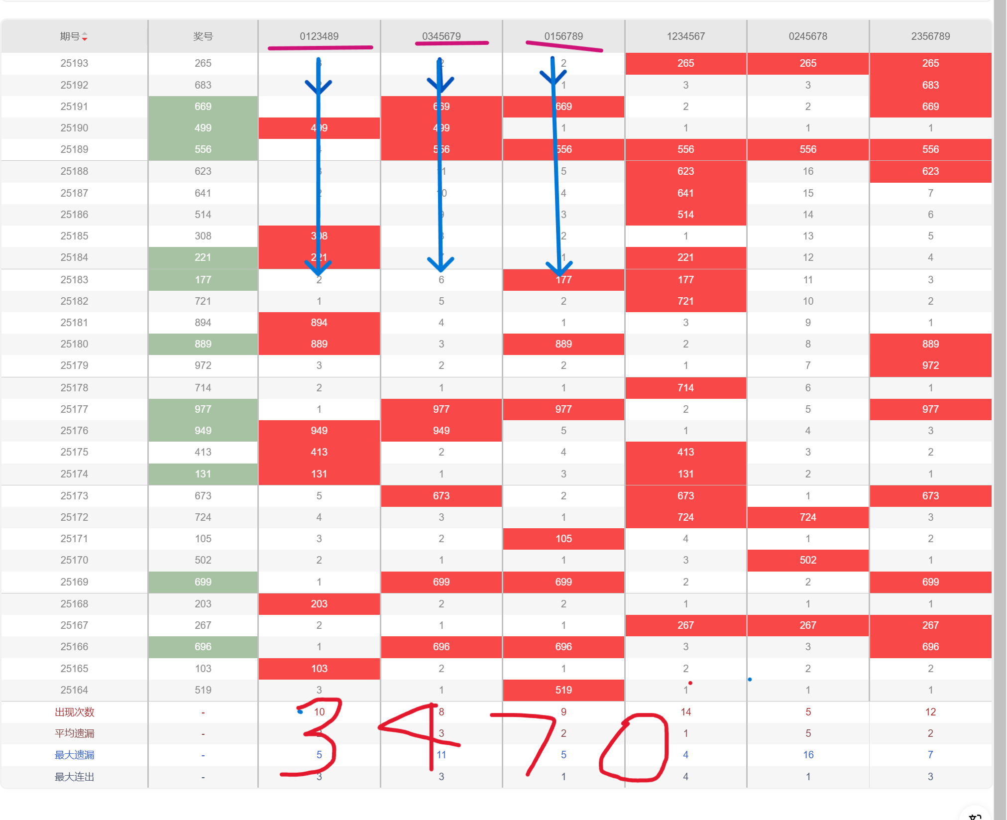 结合以上3项分析结果,134780 回补 关注这回补6码的组合