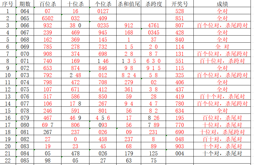金莱排列3第085期:本期注意豹子