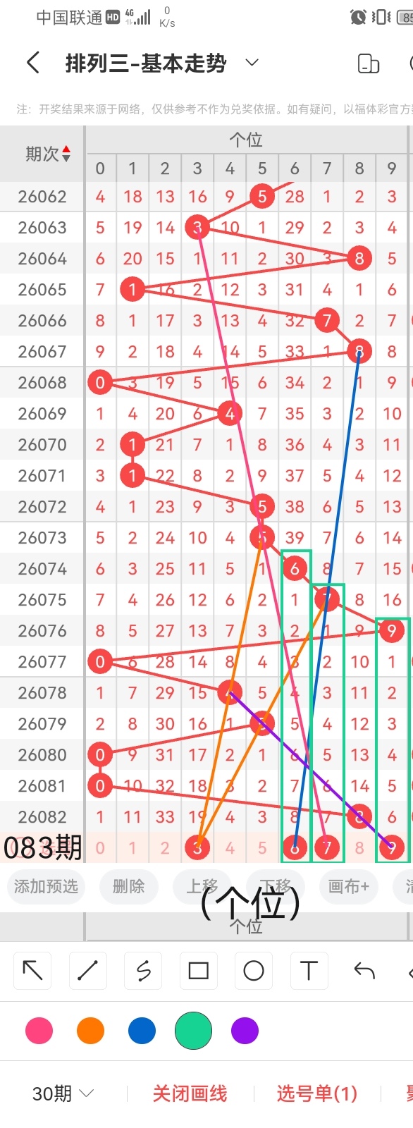 通过以上对上期的简单回顾,下面进入体彩排列三第2026083期(下面简称本期)的选号分析: