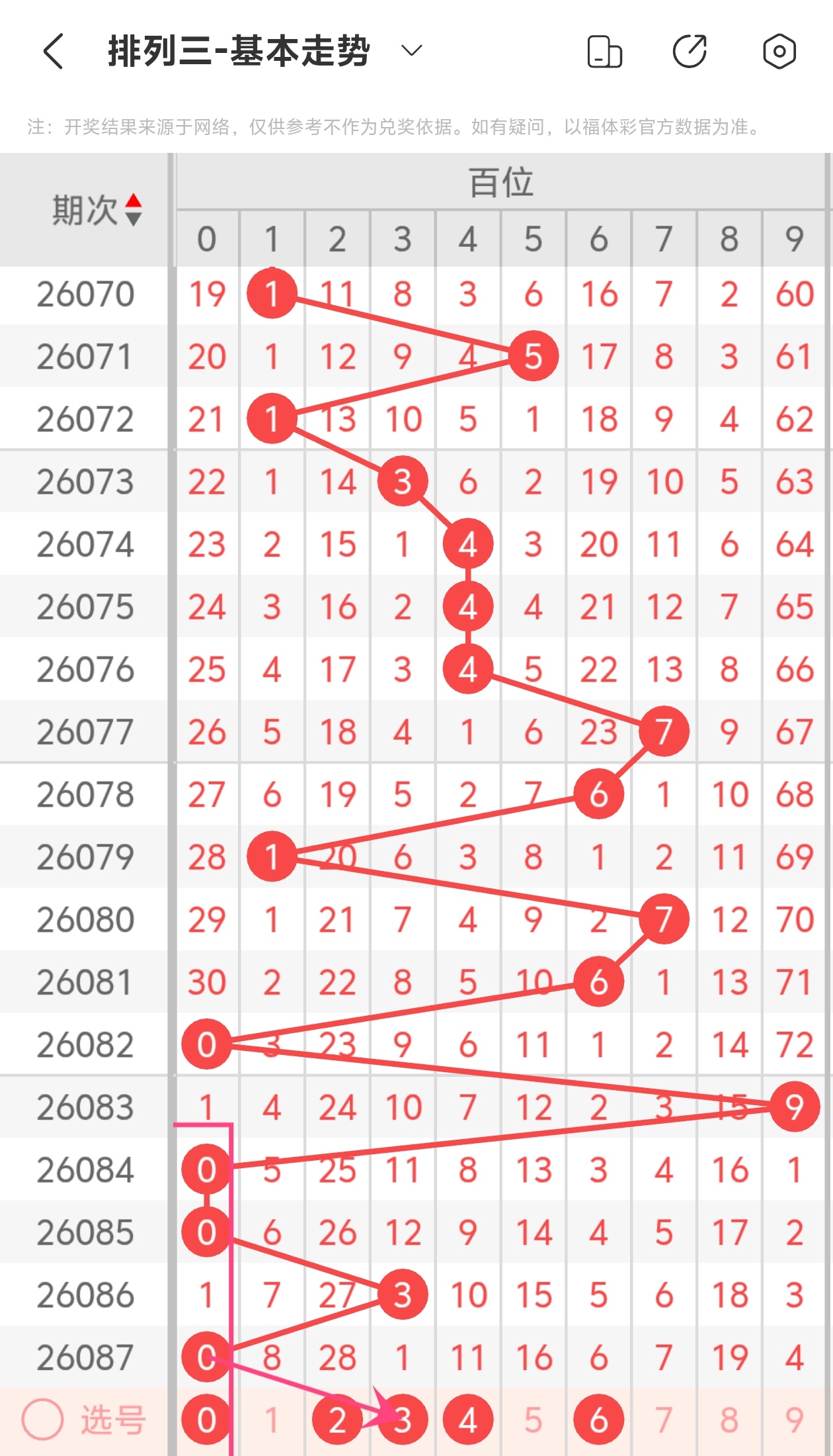号码冷热:号码0在上上期和上期连续开出,表现极热。号码7也是近期热号。本期可关注近期较冷的号码(如1, 2, 6, 8, 9)进行回补,同时防范部分温号(如3, 4, 5)的延续。本期希望能给大家一个靠谱的参考,在大家阅读文章的时候,期望您能动动发财的小手,点点关注,万分感谢,另外也需要提醒大家参考为主,切勿当真,不要盲目跟随!