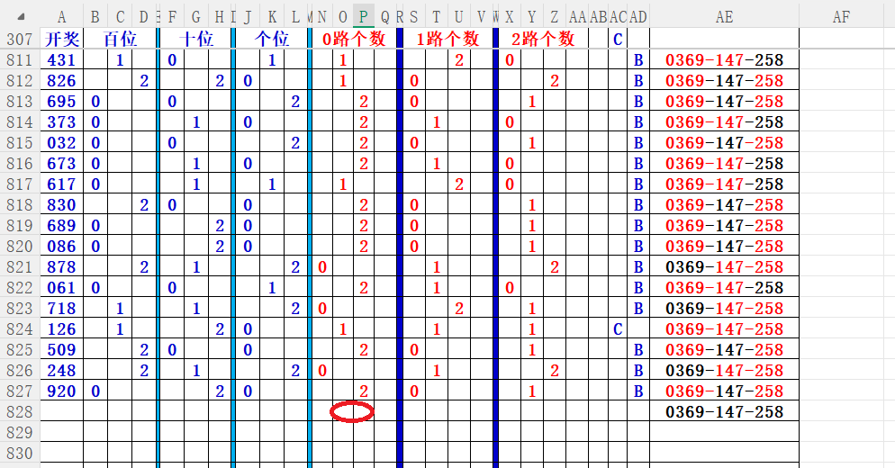 如上图56,012路分析0路出号的概率还是很大,本期可以0路号入手做胆0369中选;看好369胆码