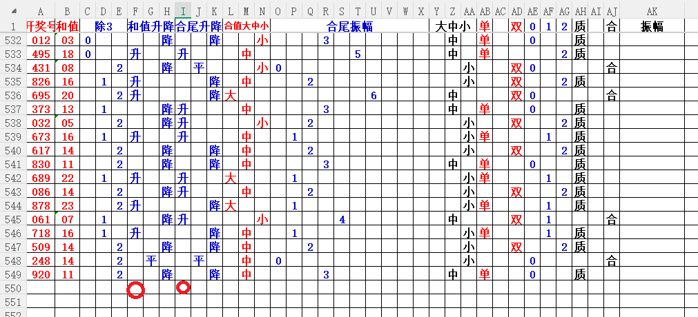如上图3,和值升平降分析,和值降的概率大,大于11和值。