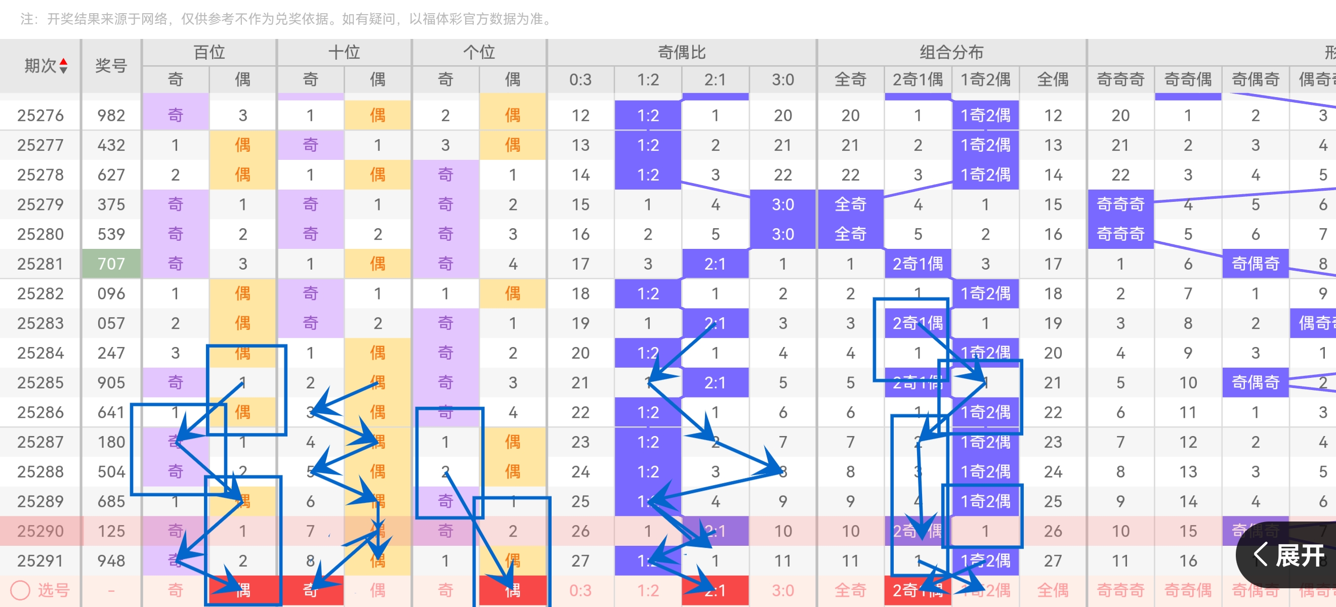 奇数连续3期占比超55%,但偶数近5期占比60%。