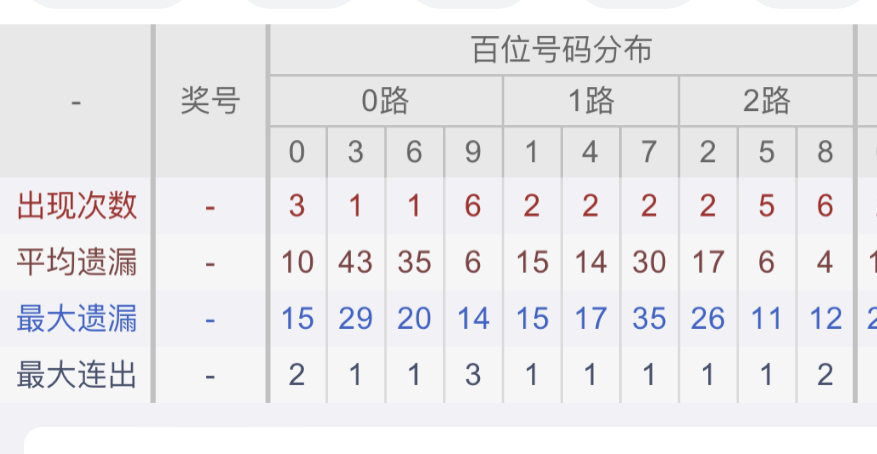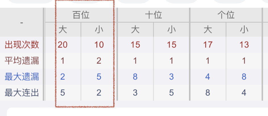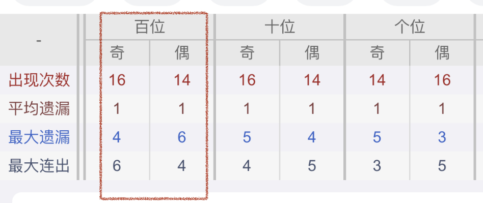 从近30期数据我们可以看出百位1是热码,这个冷热码数据我们结合之后的分析再利用它