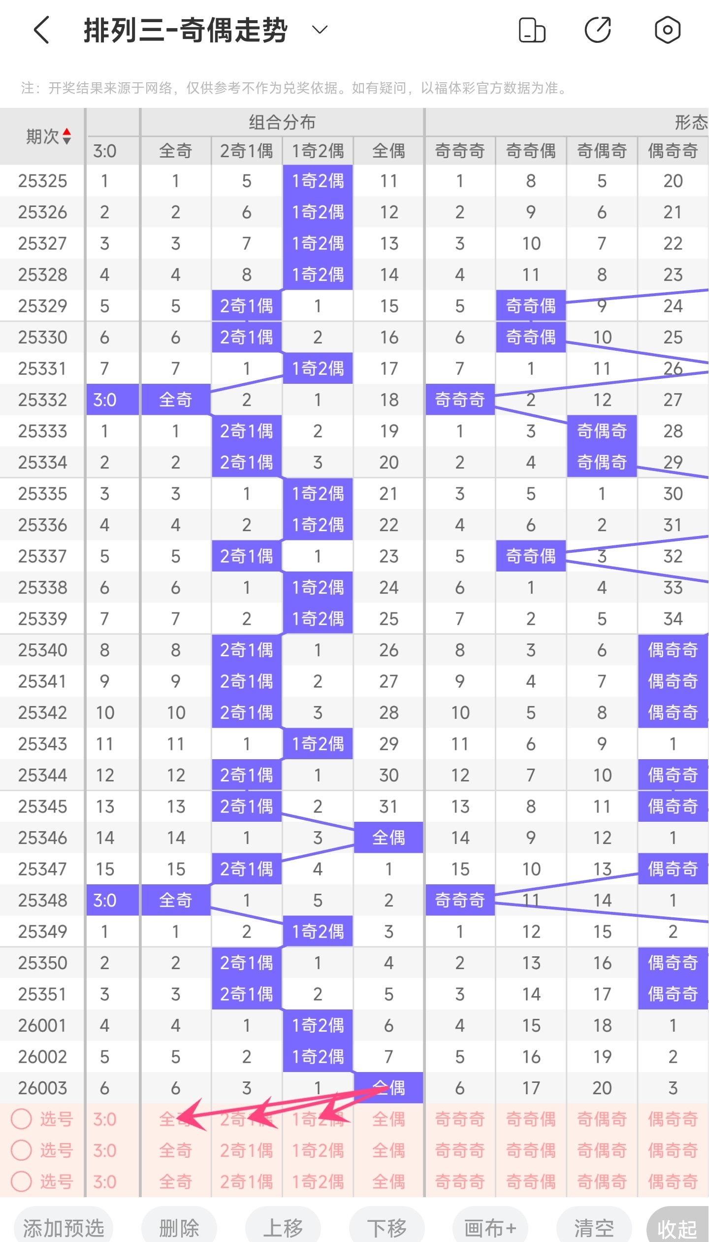三、通过奇偶走势分析: