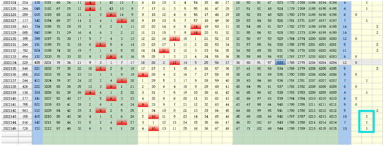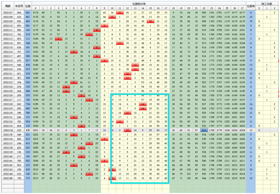 先了解概念吧,位距和就是:指百距+十距+个距 ,比如2022145奖号728,2022144奖号016  7+1+2=11 位距和=11。这样就对他们组成的和值做了总结,然后就可以对位距和的做出判断以及分析,具体我们看图表。