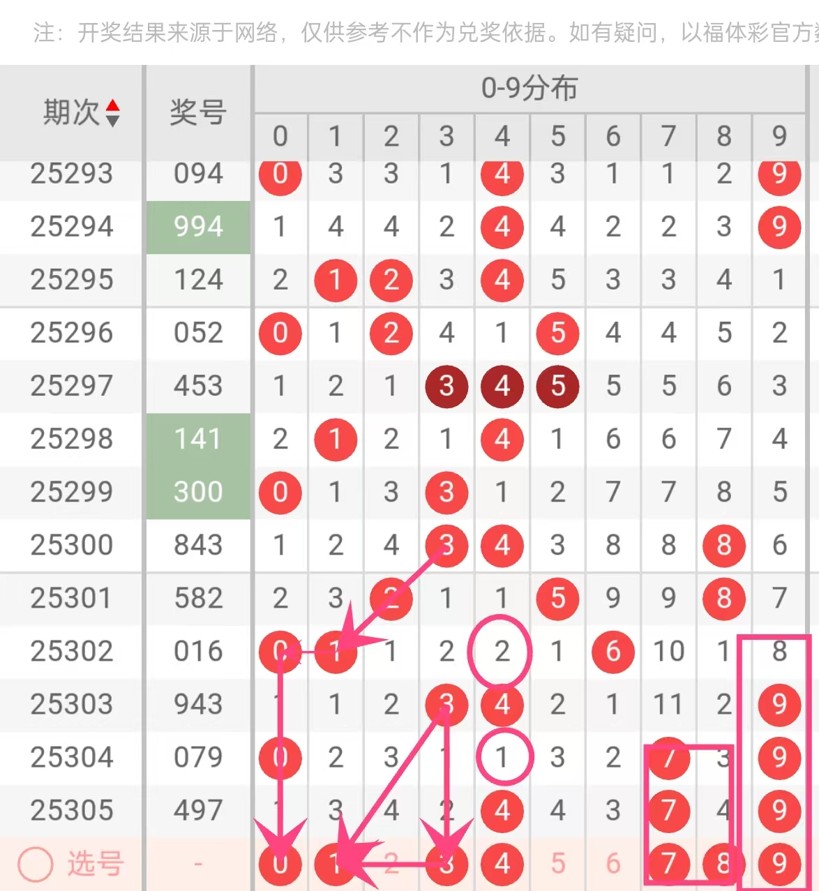 文章号码顺序不代表胆码推荐程度