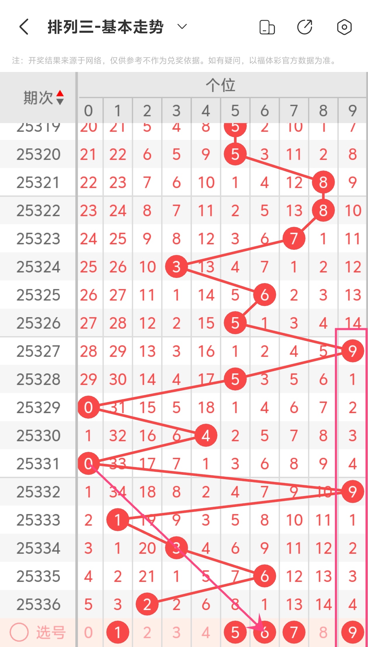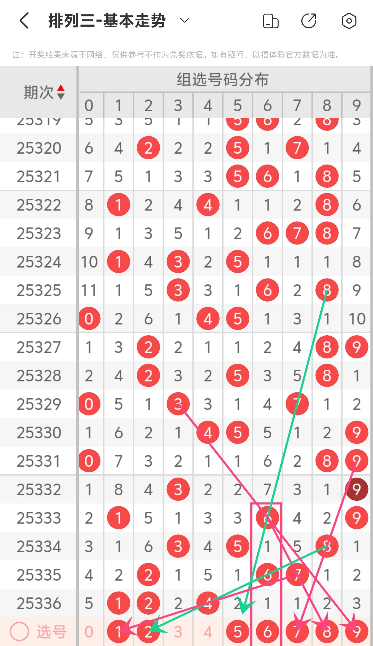 通过以上简单分析,我们看下25337期号码的定位分析: