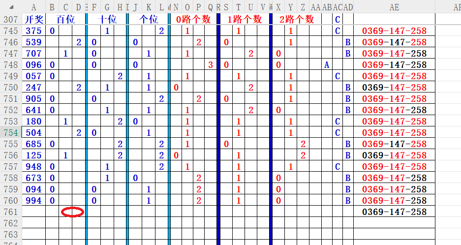 如上图56,012路分析0路出号的概率还是很大,本期可以0路号入手做胆0369中选;看好369胆码