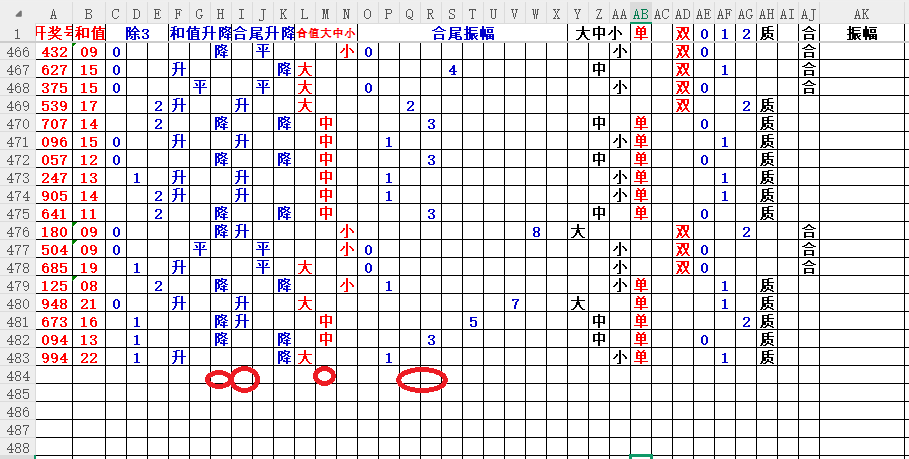 如上图3,和值升平降分析,和值降的概率大,小于22和值。
