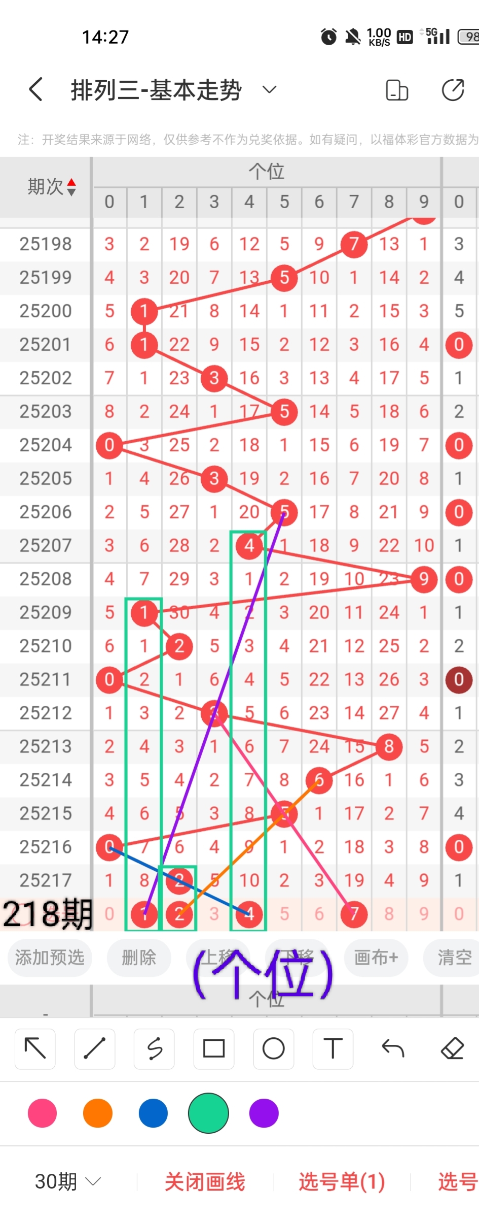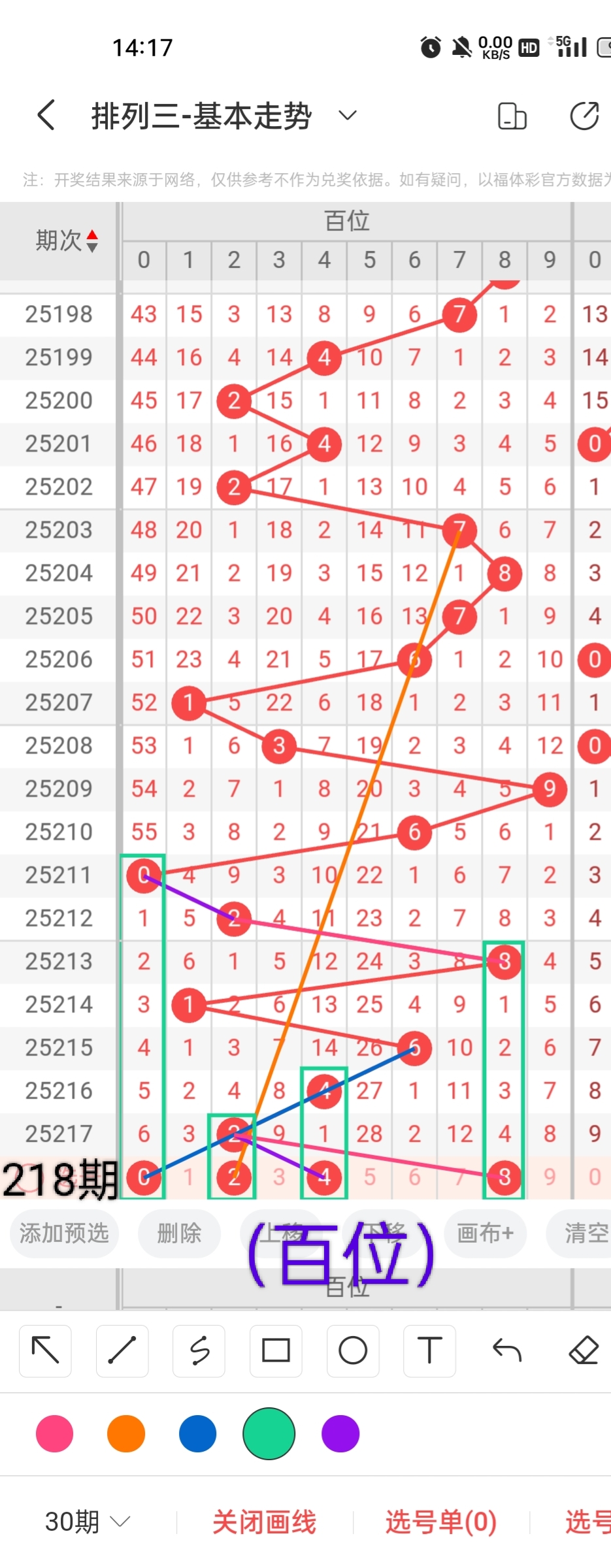 通过以上对上期的简单回顾,下面进入体彩排列三第2025218期(下面简称本期)的选号分析: