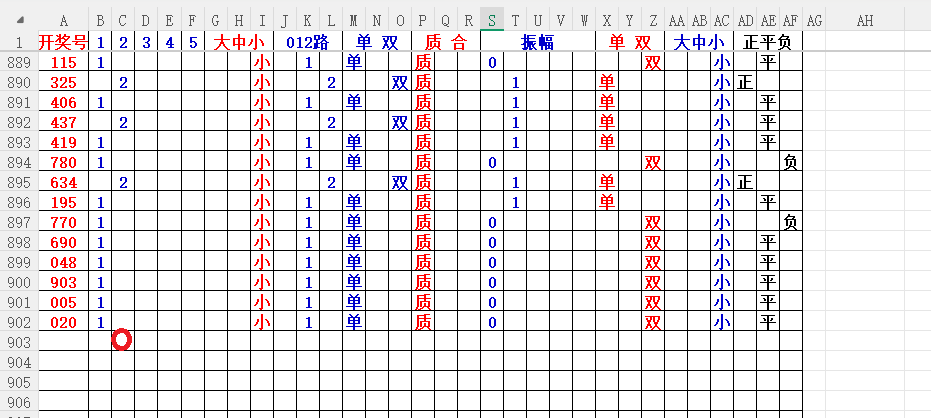 如上图7,012路分析-1路出号的概率还是很大,本期可以从1路号入手4代表78