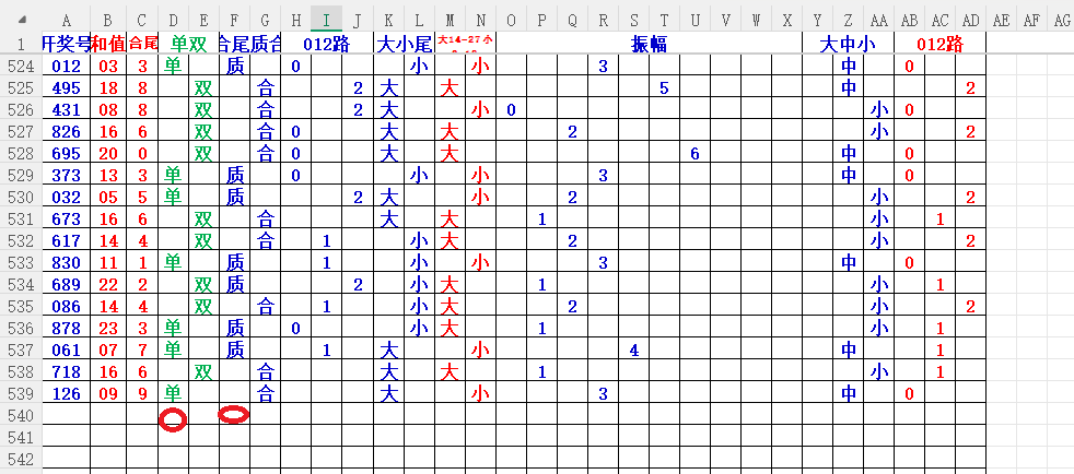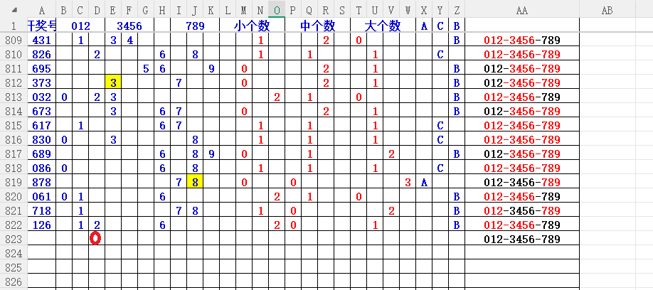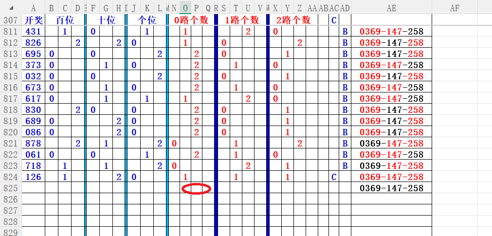 如上图56,012路分析0路出号的概率还是很大,本期可以0路号入手做胆0369中选;看好369胆码