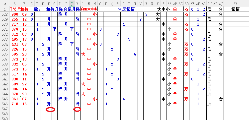如上图3,和值升平降分析,和值降的概率大,大于09和值。
