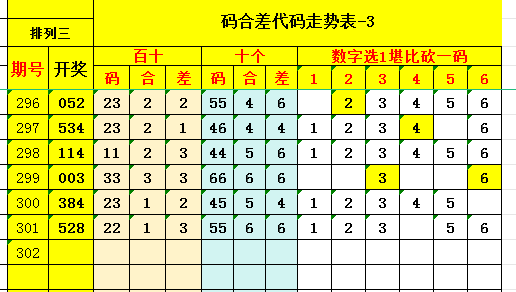 组号的核心关键,在于精准把握码合差。“码” 即开奖号码本身;“合” 指开奖号中三个数字两两相加的和尾;“差” 则是三个数字两两相减的绝对值。为化繁为简,我们将分析重心放在百十位与十个位的码合差上,同时设定专属数字代码:百十位的码合差数字代码 1、2、3,分别对应数字 1=147、2=258、3=0369;十个位的码合差数字代码 4、5、6,分别对应数字 4=147、5=258、6=0369。结合往期开奖数据制作走势图表,从多角度对比号码组合差异,巧用合差选号技巧,进而筛选出高潜力号码组合。