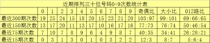 个位分析:最近300期奖号由冷到热表现为:922,06826,1530,232,734,435,339次,该位号码奇偶比为155:145,大小比为138:162012路比为113:99:88