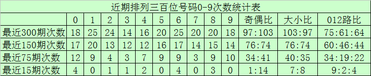 百位分析:最近300期奖号由冷到热表现为:322,024,526,4929,831,2633,734,139次,奖号奇偶比为150:150,大小比为153147012路比为108:102:90