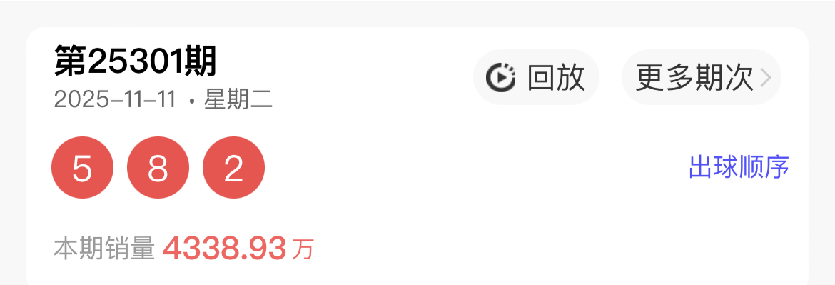 第2025301期开奖情况图