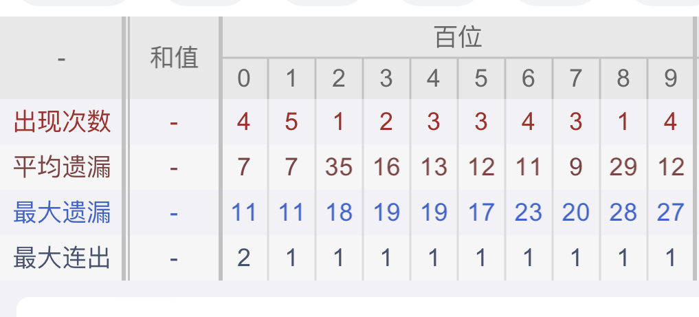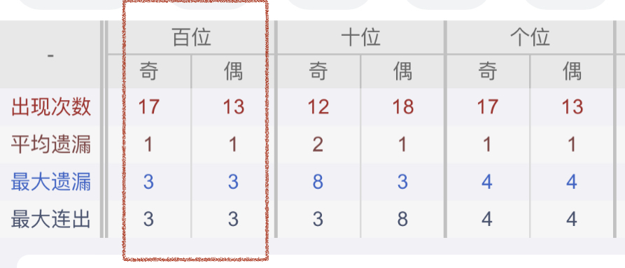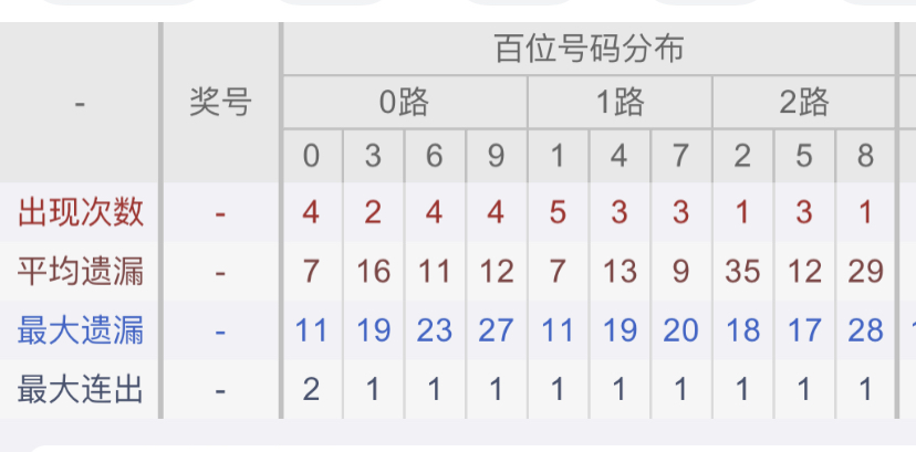 从近30期数据我们可以看出百位1是热码,这个冷热码数据我们结合之后的分析再利用它